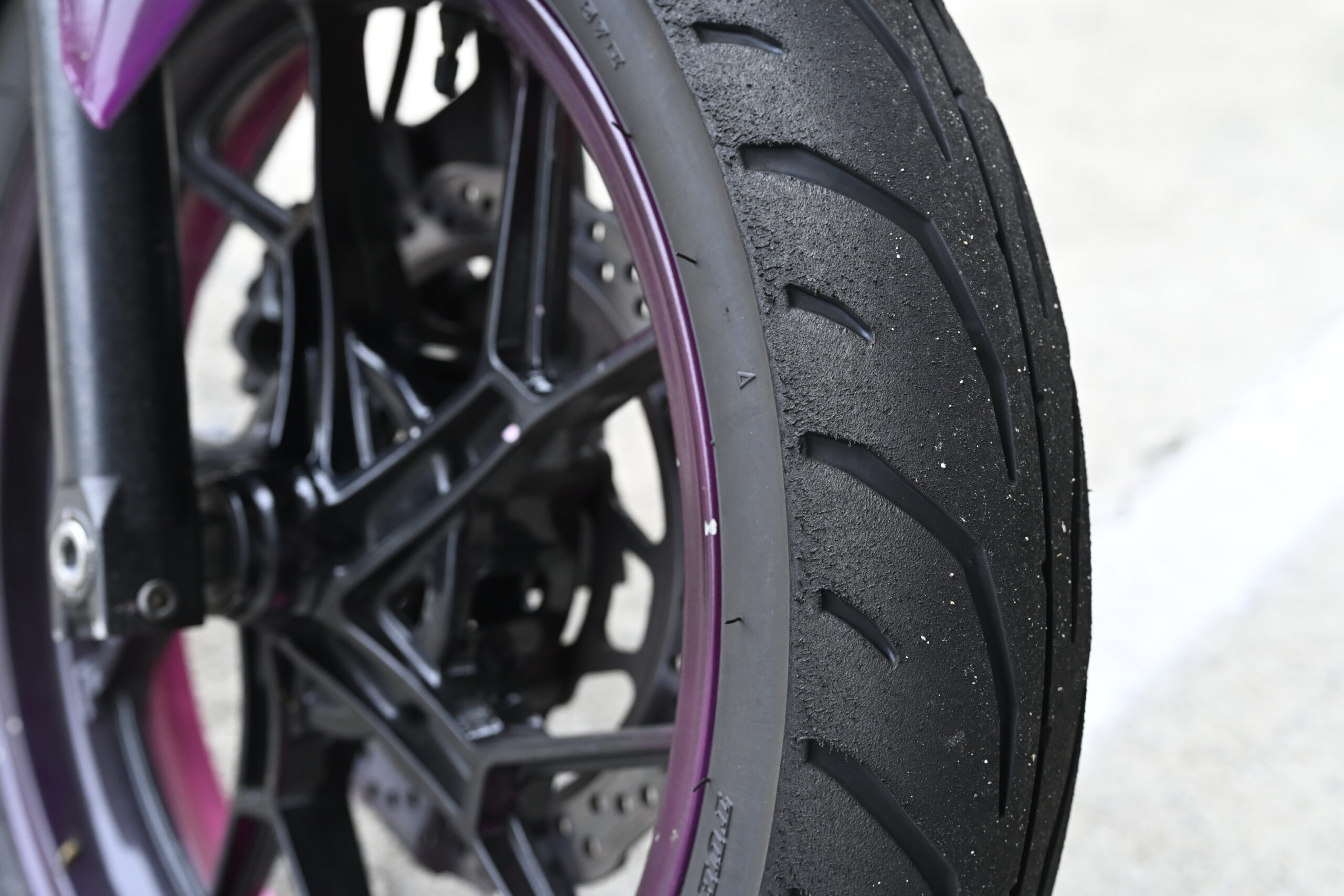 タイアの形状に対する依存度が二輪車は高いと思います。ブレーキがフロントフォークのセッティングに与える影響と同様に、タイアの感触に合わせてサスペンションを作り込む必要があります。