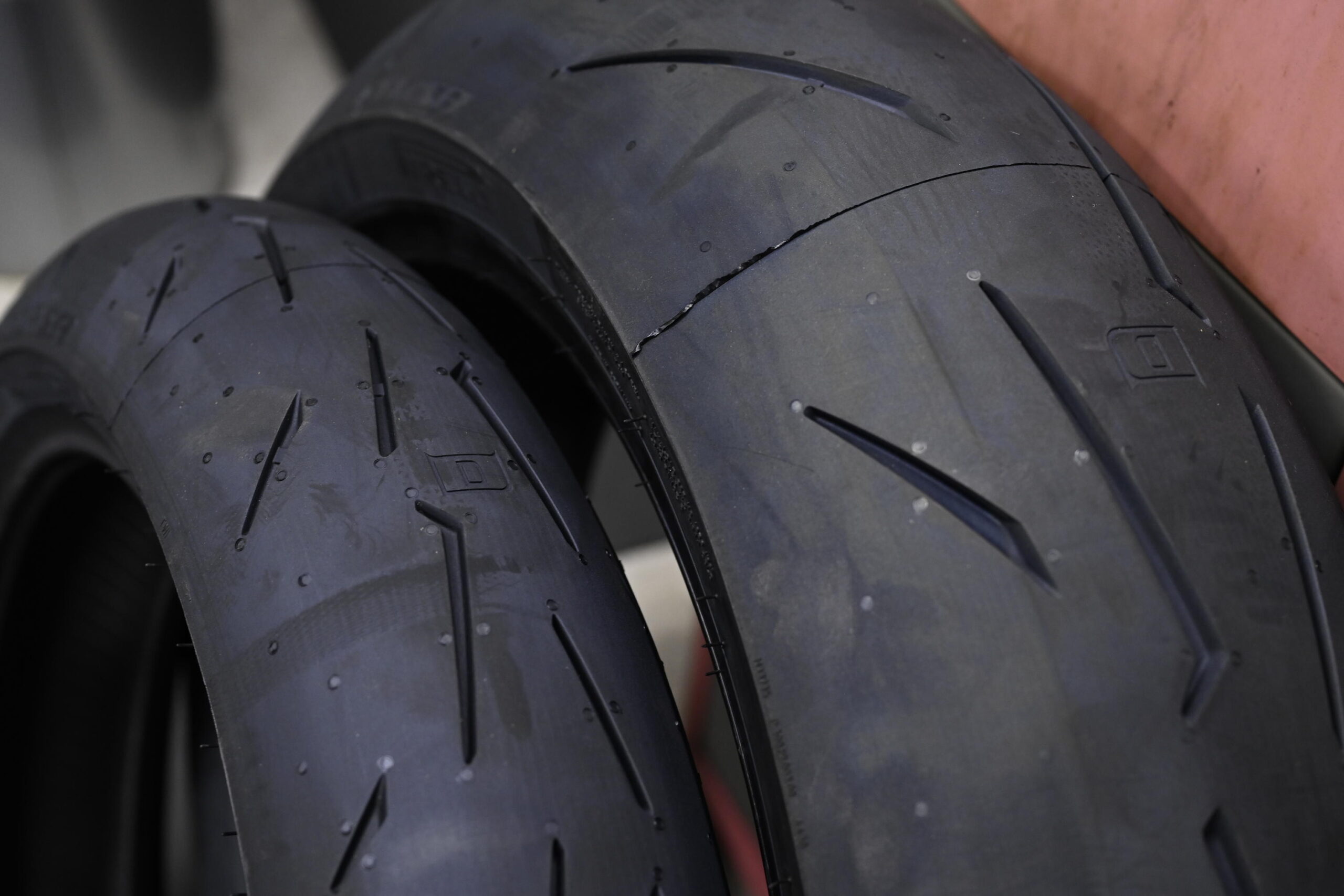 - フロントタイヤの旋回特性:前輪の役割は旋回方向を指示することにあり、バンク角が深くなるほど旋回力が強まります。バンク角が増すと、スリップアングルがより多く稼げるため、旋回時の安定性が増します。このため、フロントタイヤの形状は尖ったプロファイルが好まれることが多く、旋回性能を強化します。