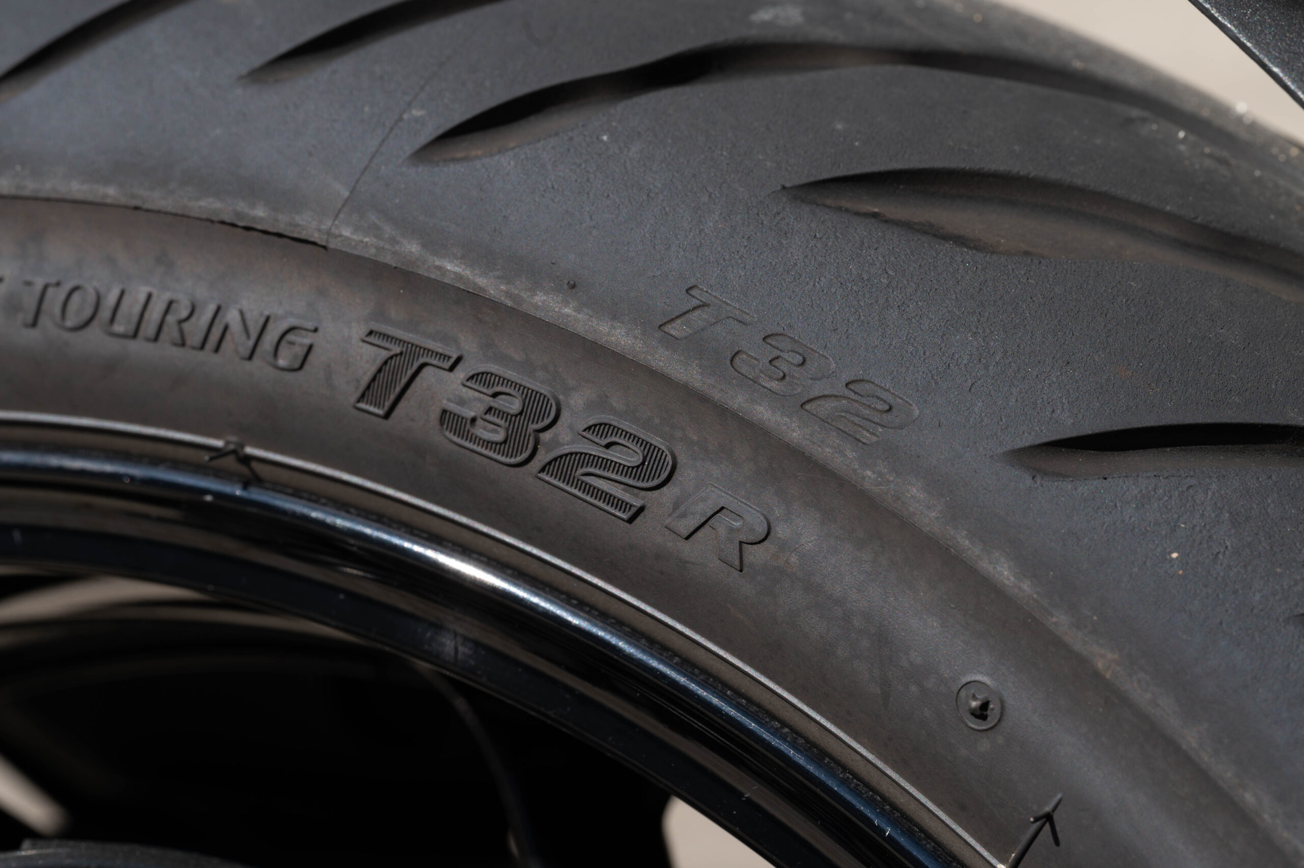 以前にタイア卸業者の方から「ツーリングタイアは二人乗り、荷物満載のツーリングも開発要素として重要なため、スポーツタイアよりも硬い事が多い」と教えてもらいました。