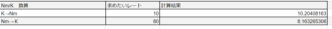 上記は極めて簡単なKとNmを変換する計算ソフト。簡単な関数で自作できます。リンク計算やLGN計算シートはこれらを多く組み合わせて動作させることになります。