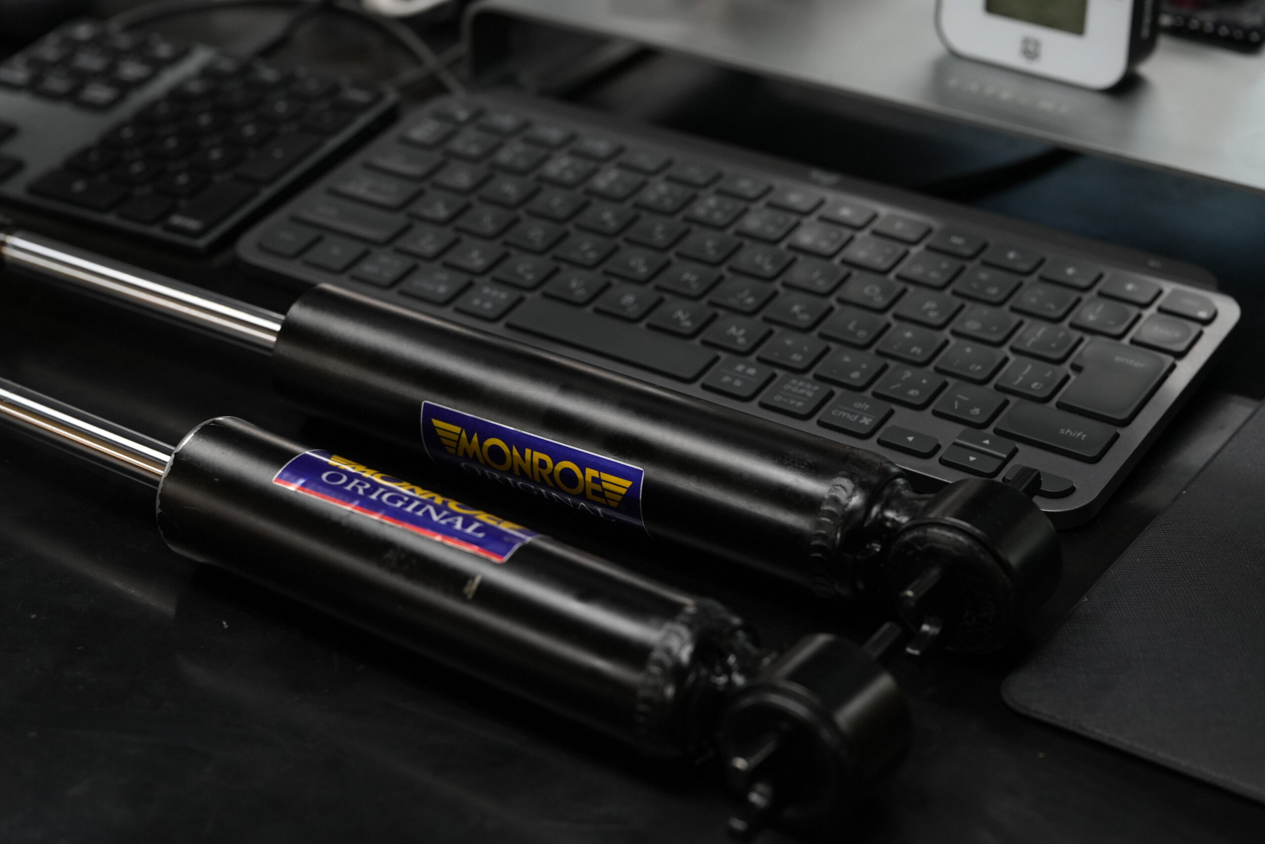 問題点を解消し寸法を確認しながら組付けを行いました。左右で減衰の強さが違っているのも気になりますが、かなり製品誤差も多いのが分かります。