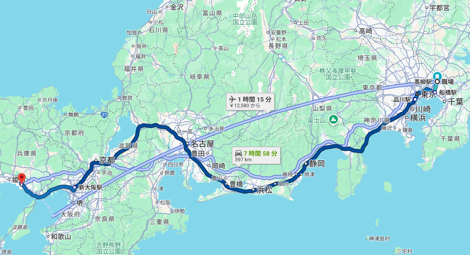 今夏は下記の通り 関西・九州方面への出張ルート を確定しました。