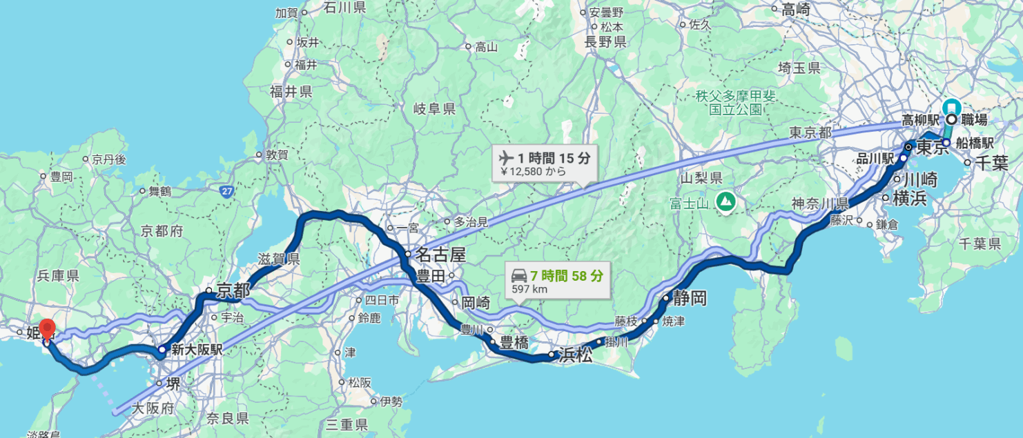 今夏は下記の通り 関西・九州方面への出張ルート を確定しました。