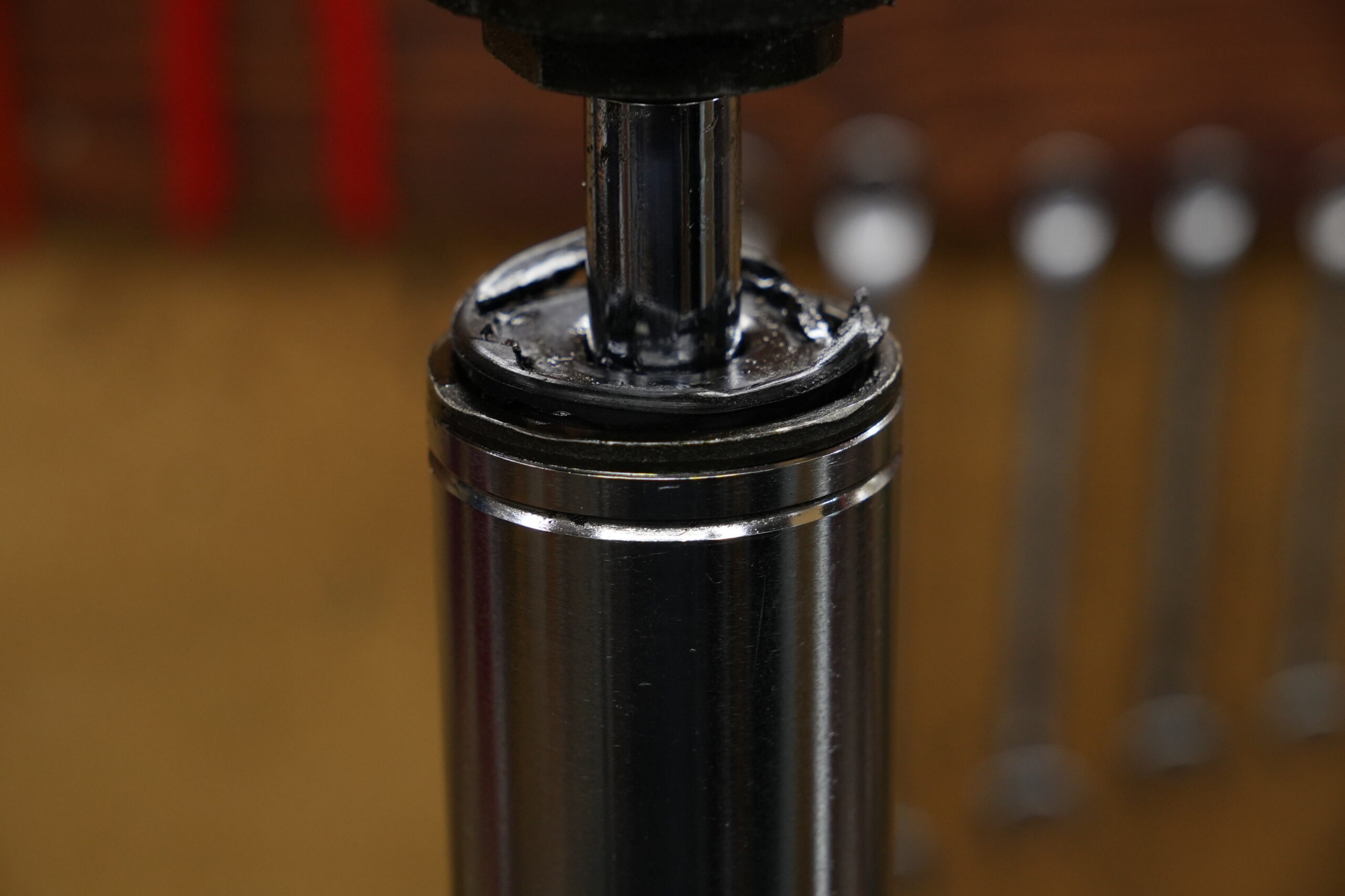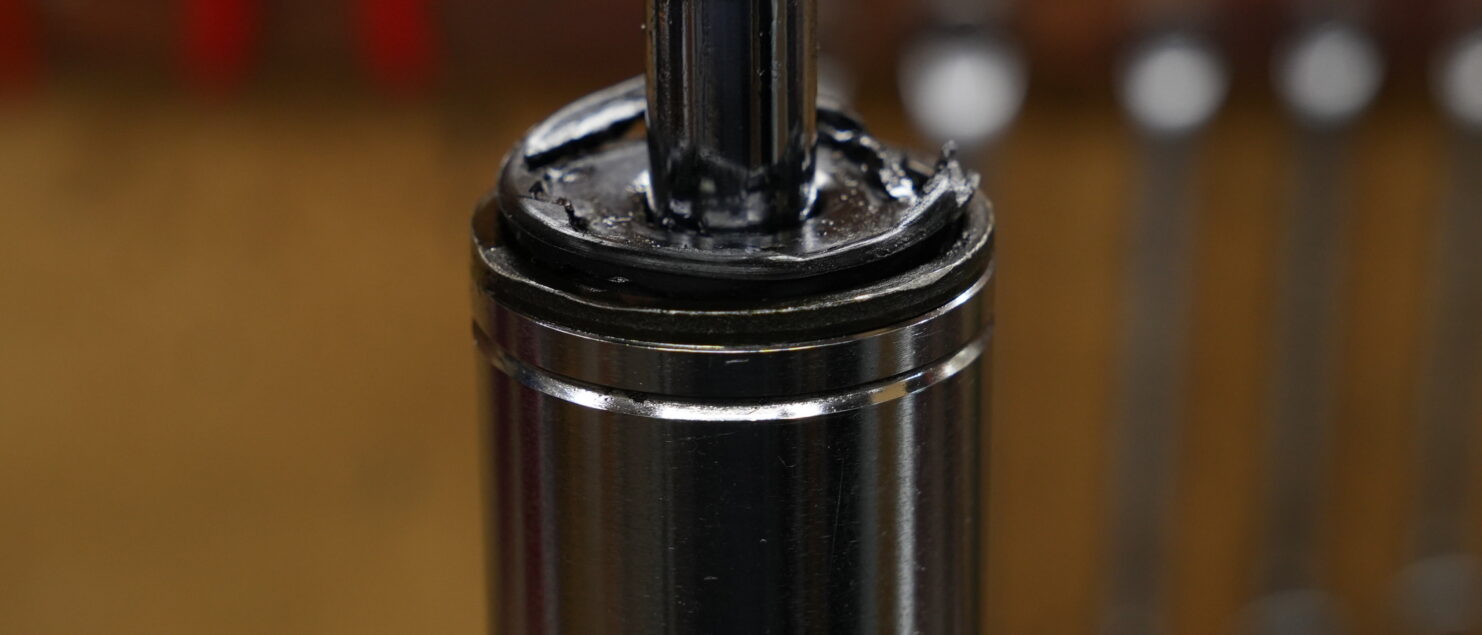 その他にもシールヘッド(オイルシールが嵌りロッドを保持する部品)が素晴らしいアイデアで固定されており、感嘆します。ただ、それも分解を難しくしており、作業工賃を高くする要因になっています。