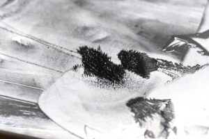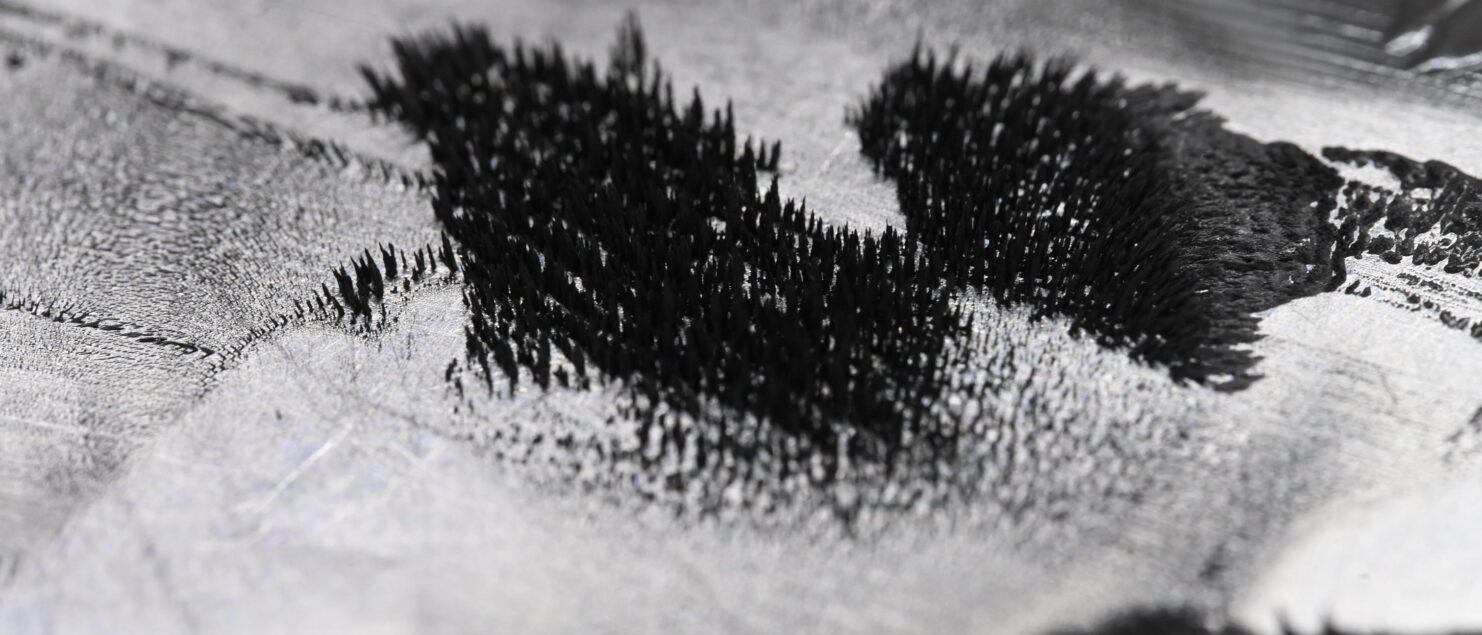 静かに見ているだけでも、磁場を与えた瞬間に形が立ち上がり、たちまち表情を変えるのが分かります。見た目はシンプルな「黒い液体」でも、磁場によって粘度や流れ方がここまで変わるのか、と改めて実感させられます。
