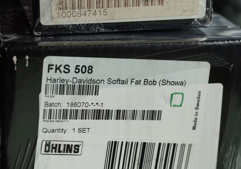 Softail Fat Bobのフロントフォーク。オーリンズ部品組み込み。