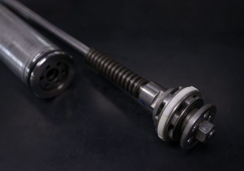 フロントフォークの改造依頼があり車両を預かっています。 フロントフォークの課題と問題点を把握するために試乗を行いました。そこでフロントフォークとリアショック…