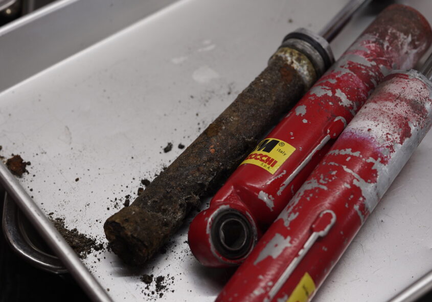 依頼いただいたMarzocchiのツインショックで珍しい事例がありましたので、報告いたします 写真からもわかる通り、内部は完全に油分が飛び乾いてしまったため、錆…