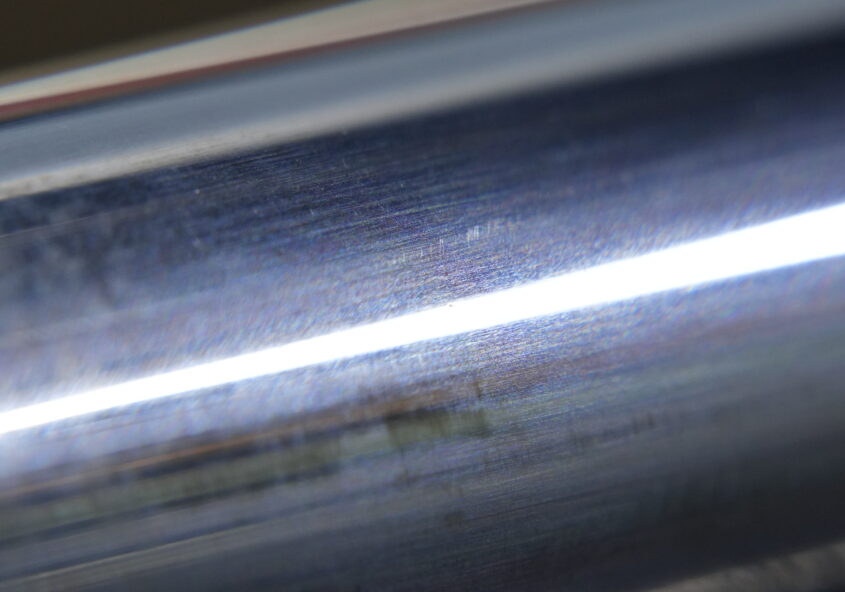 GSX-R750のリアショックをオーバーホール中です。 ロッド表面がそれほど傷みはなく再利用しますが、粗さを整える意味もあり研磨を行いました。 左は純正の…
