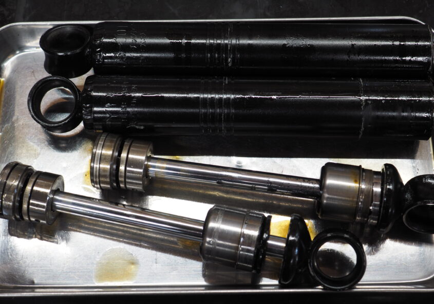 少し前に依頼を頂いたオーリンズのフロントフォークを紹介します。 お客様が中古の車両を購入し、オーバーホールのために外したら一本はインナとアウタがすっぽ抜けオ…