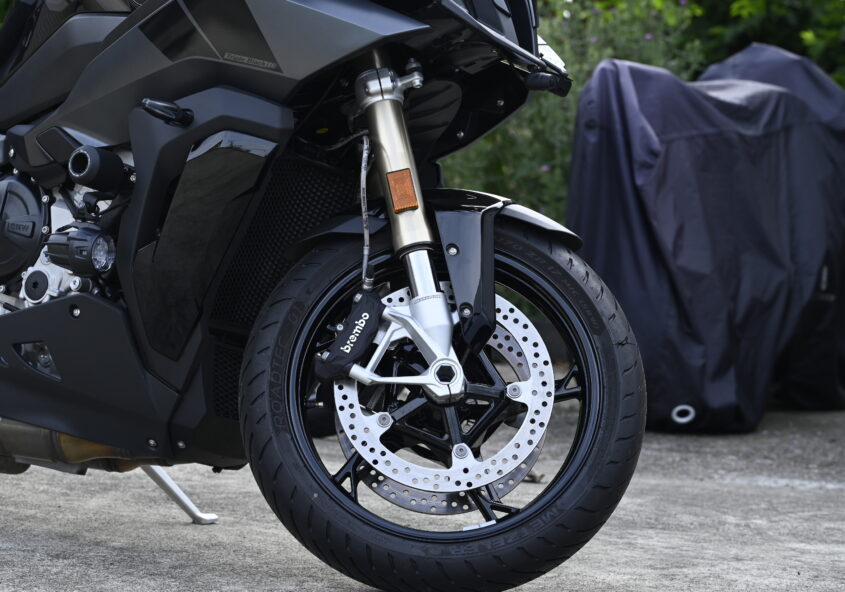 BMW・S1000XRの前後ショック脱着手順のあらすじを紹介、フロントフォーク編。
