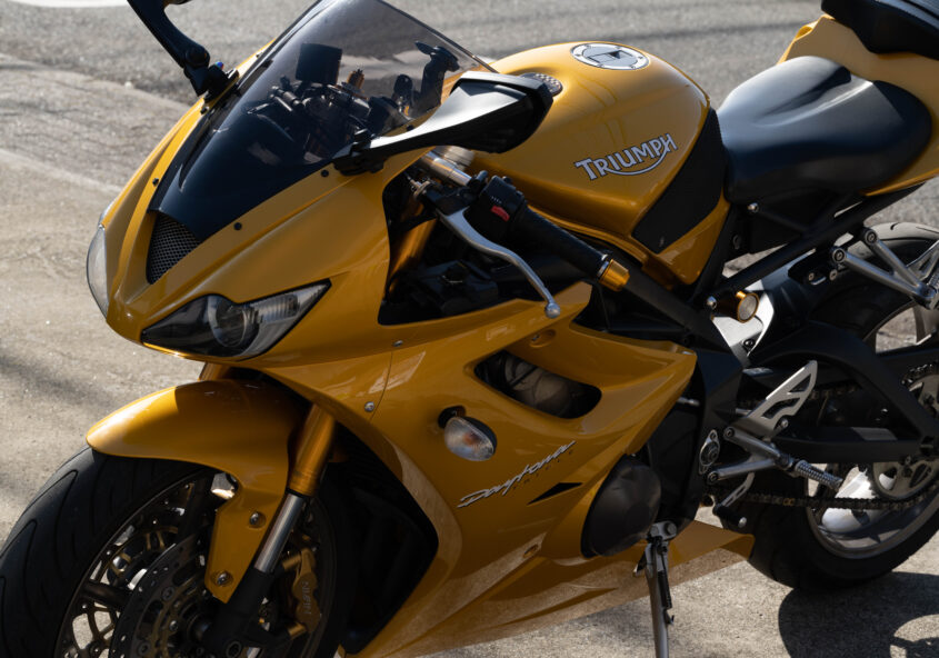 トライアンフ・デイトナ675の前後ショックO/Hと仕様変更の試乗