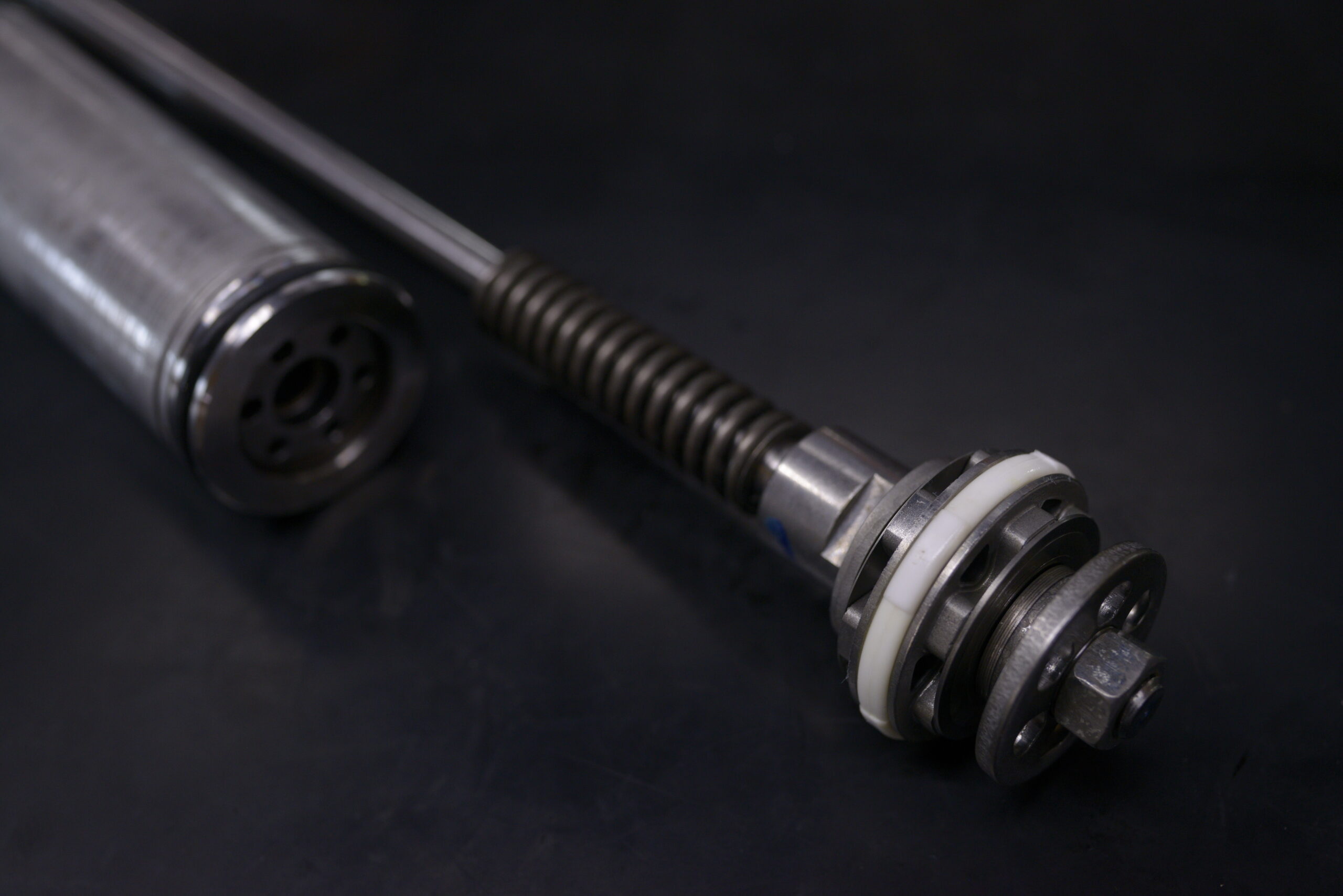 同じホンダの部品を用いてカートリッジを追加します。右に伸び減衰、左に厚減衰を発生する機構を組み込み、減衰調整とイニシャル調整が可能なフルアジャスタブルに仕上げます。