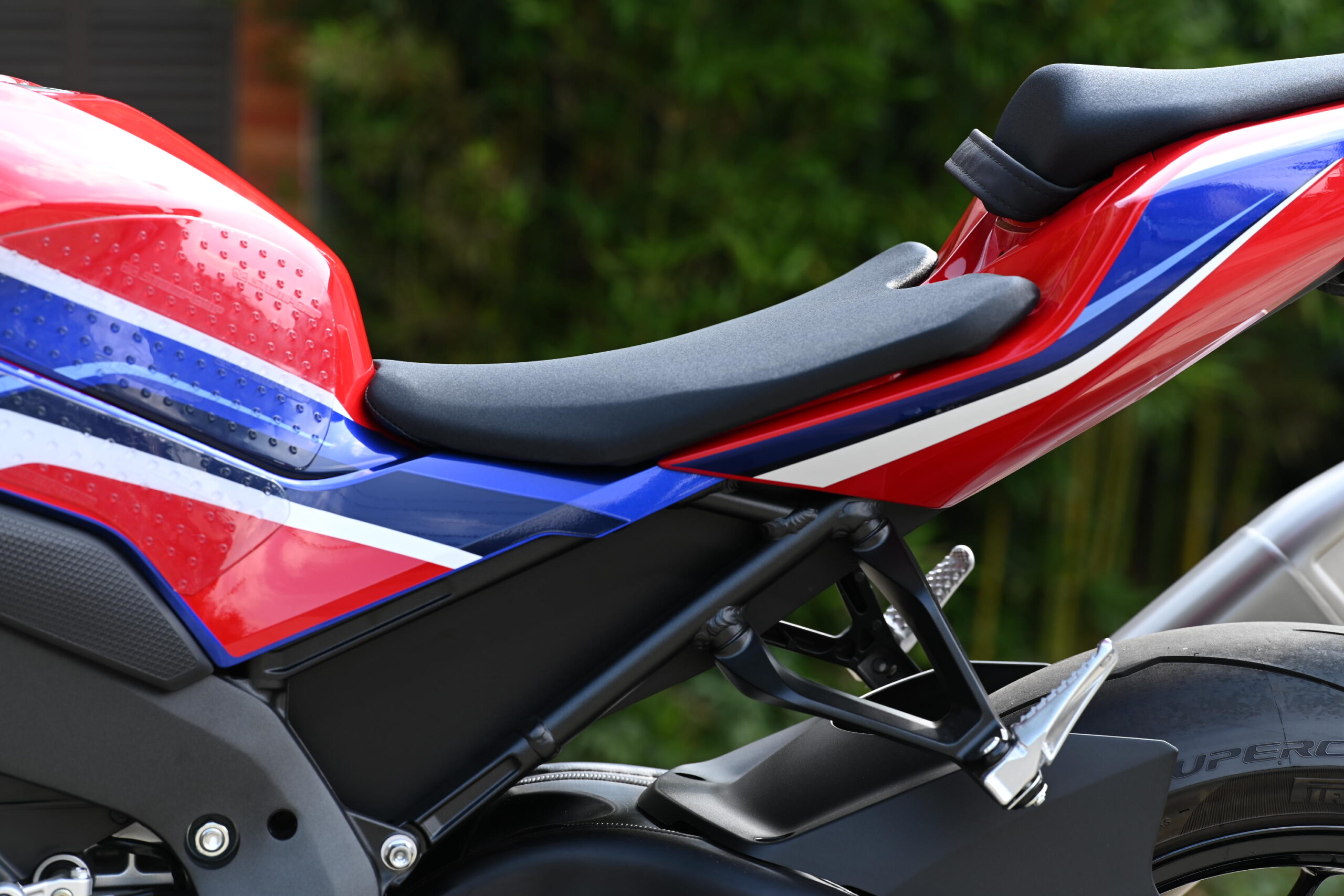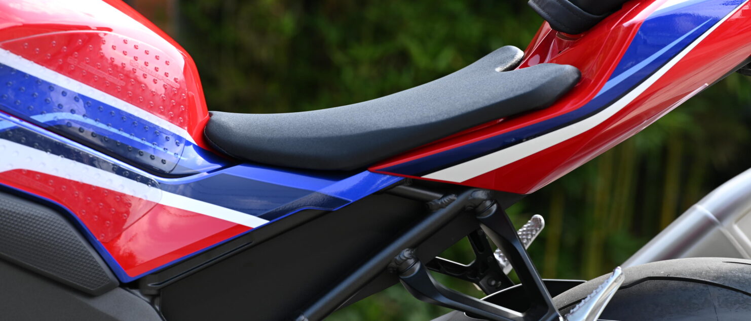 CBR1000RR-R SPは、ハンドルの絞りをわずかに追加し、レバー角と到達距離を微修正。あわせてシート座面全体を1㎝削り、後端をよりフラット寄りに整えてから試乗しました。