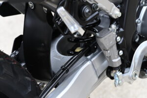 これにより、足つき性が向上するのはもちろん、加速時にはリアがしっかりと路面を捉え、減速時にはフロントに頼りすぎない、安心感のあるハンドリングを取り戻しています。