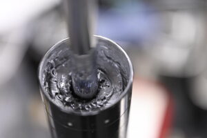 実際、ここまで劣化した磁性流体では、どれだけコイルに通電してマップを切り替えても、減衰力はほぼ生まれません。見た目には「ただ動いているだけの筒」になってしまいます。