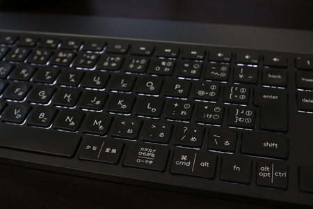 MacにもWindowsにもブルートゥースで接続可能な上に、3台まで切り替えボタンで使い分けができます。前述のロジークールのマウスMxMaster3との連帯で使い勝手はさらに向上します。センサーにより指を近づけるとLEDのバックライトが光り、暗い場所でも見やすく便利です。あと格好よく雰囲気が良い。最近流行りのゲーミング系は色使いが派手でおじさんの私には少々騒がしいので、この程度がちょうどよく感じます。