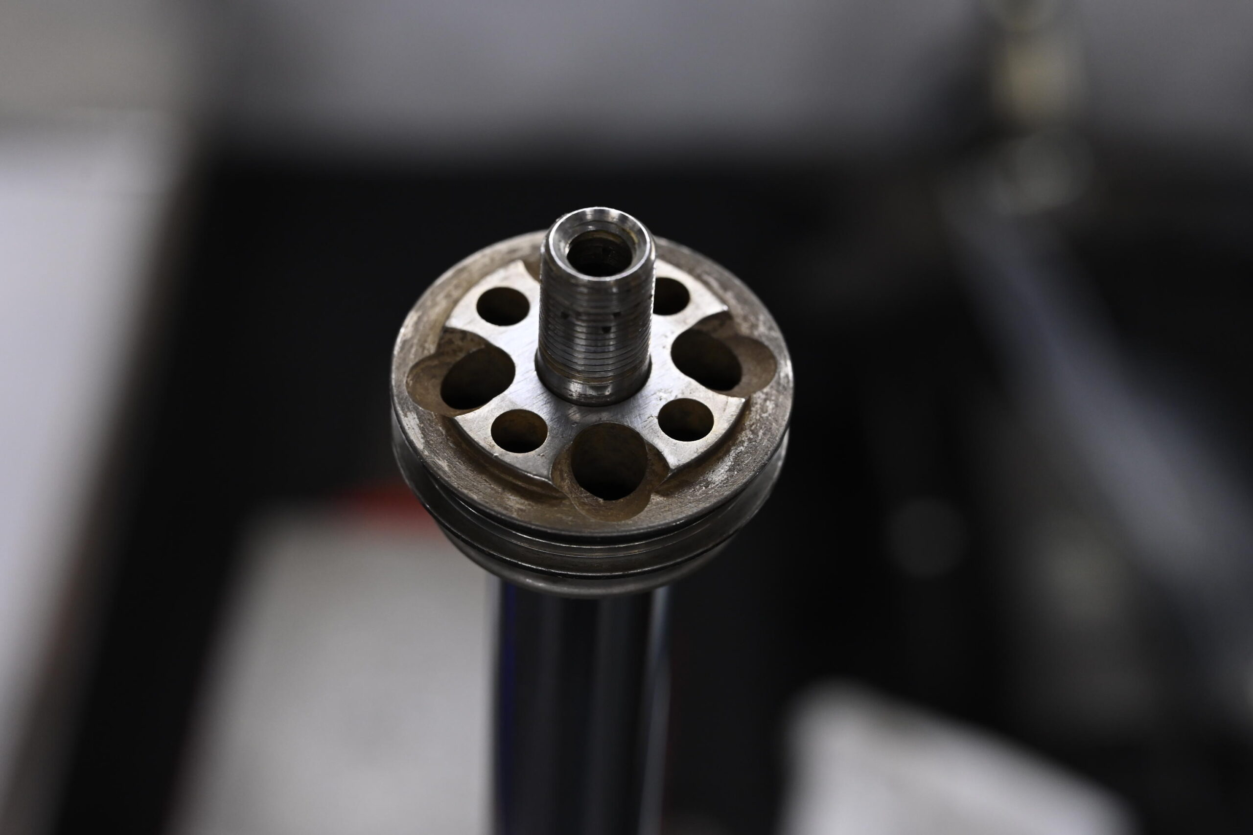 フロント側はピストンやシム構成がクアンタム純正とは異なる独自仕様でした。