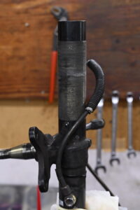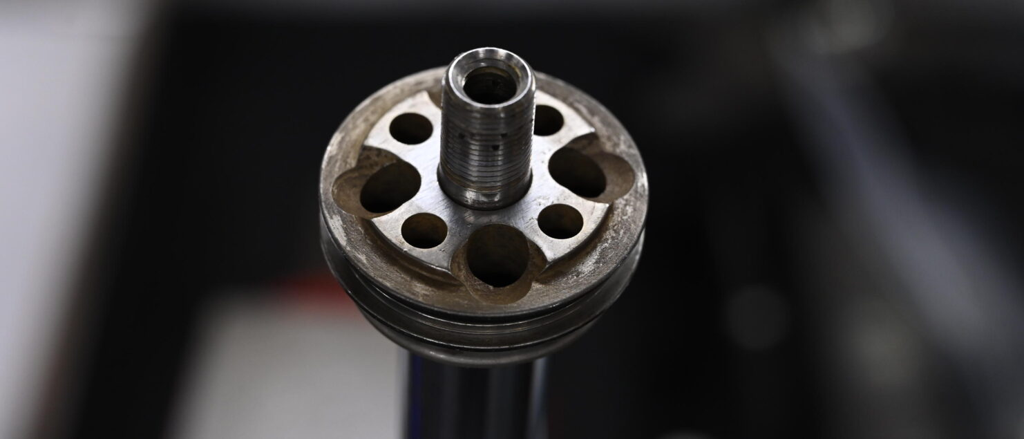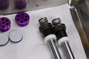 フロント側はピストンやシム構成がクアンタム純正とは異なる独自仕様でした。