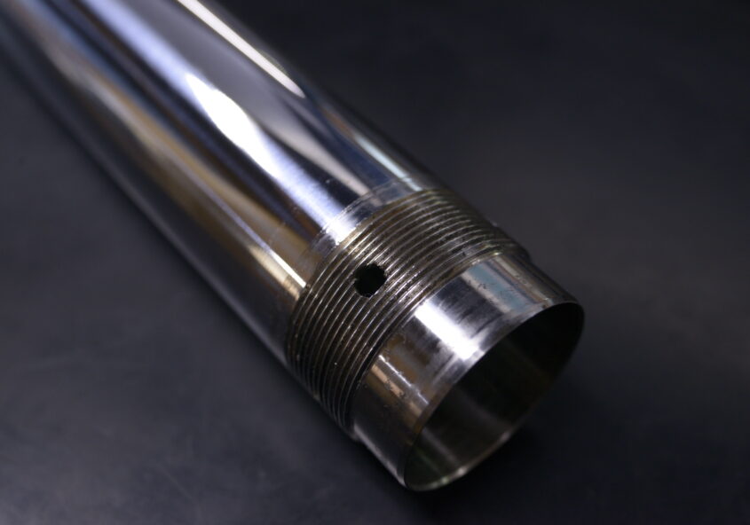 オーバーホール依頼でしたが、インナーチューブの傷みが激しく再メッキも行うことになりました。 かなり激しサビや傷の具合が上の写真からも容易に確認できます。 倒立フ…