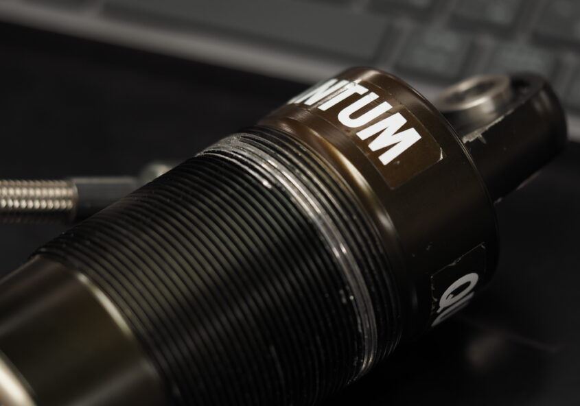 四輪用のクアンタムを作業しています。 同メーカーのダンパーは基本仕様の変更が細かく行われており、今回依頼分は初めて見る仕様でした。 シリンダーにフリーピス…
