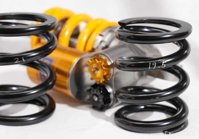 弊社で開発したスプリング リニアスプリング53-100シリーズ。セイクレッドグランドのID53で自由長100mmという意味ですが、こちらはオーリンズのTTxと…