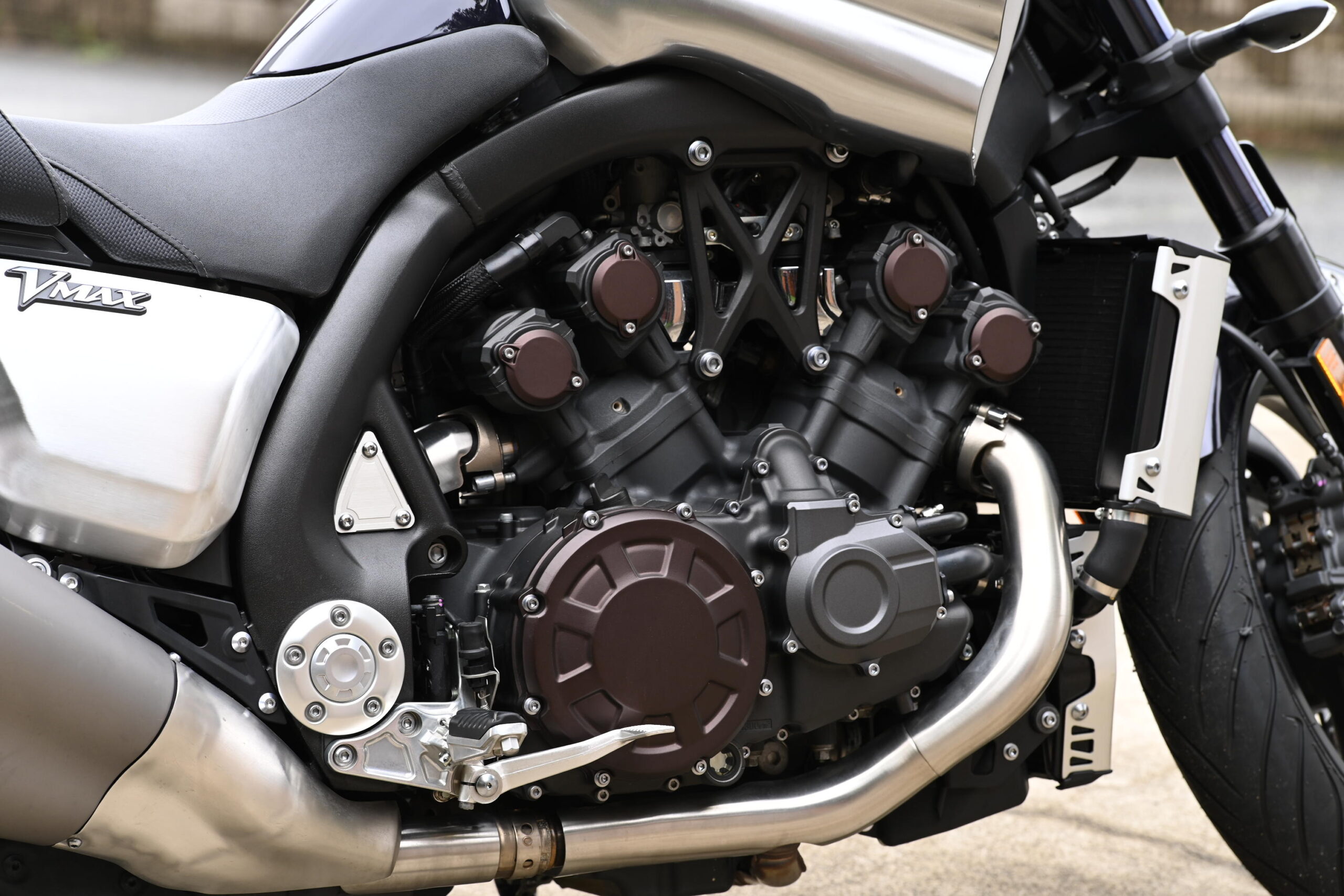 ギャップを越える際や減速時の挙動でも、底突きしにくいよう前後サスペンションをバランス良くセッティング。ツアラーモデル並みの落ち着きを保ちつつ、VMAX1700本来のパワフルさを楽しめる仕上がりをめざしています。