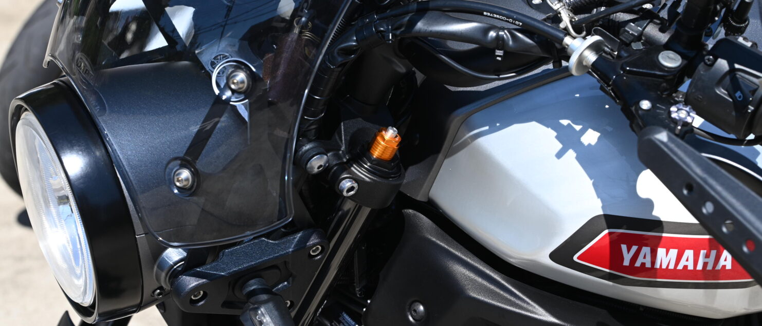 オーリンズ製リアショックは、信頼性が高く、多くのライダーに愛用されていますが、取り付けただけで完璧に車両にマッチするわけではありません。実際、販売状態のままではXSR700に対して若干の違和感がありました。そこで、まずはイニシャルを少し抜いて調整し、よりスムーズな動きを実現しました。イニシャルの調整により、リアの沈み込みが自然になり、結果としてリアショックがしっかりと機能するようになりました。この調整により、リアの動きが大幅に改善され、車両全体のバランスも良くなりました。